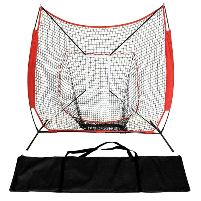 7'×7' Baseball Softball Practice Net Bow Frame & Strike Zone, Hitting Pitching Batting Net w /Carry Bag for Training Aids Accs