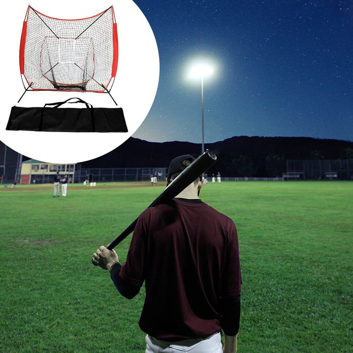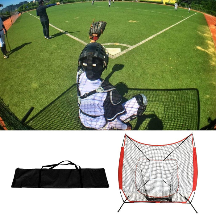 7'×7' Baseball Softball Practice Net Bow Frame & Strike Zone, Hitting Pitching Batting Net w /Carry Bag for Training Aids Accs