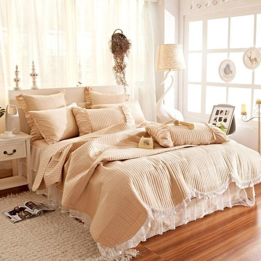 $207.992017 100%Cotton Quilted comforter for summer Bedding Set filling cotton velvet Duvet cover set Bedskirt Queen King size 3/4Pcs