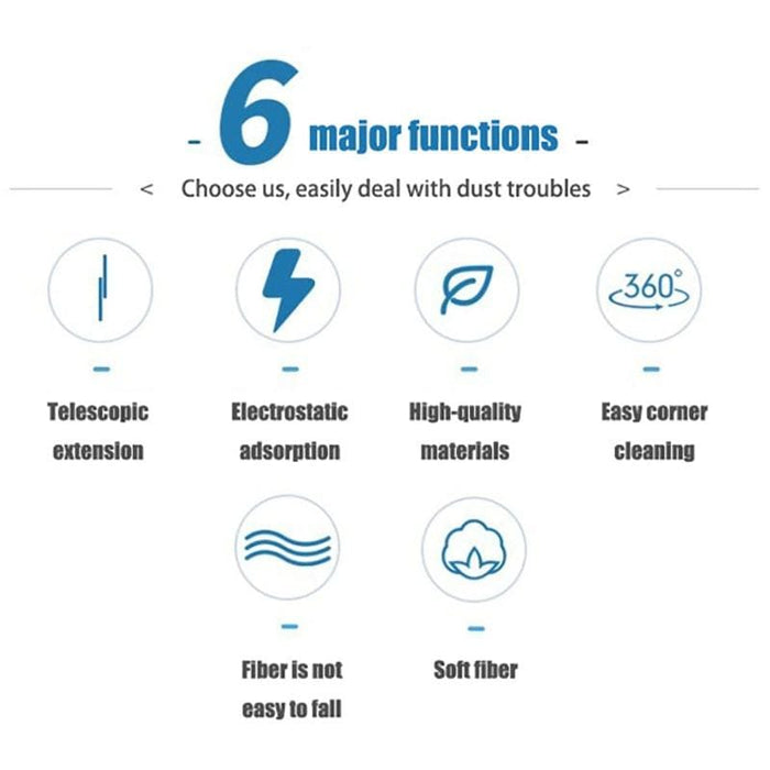 Features1 the easy solution to the impossible, the task of breaking the dust without using a feather duster or a dust cleaner 2 the electrostatic charge bristles attract and trap the dust make it the perfect ceiling fan cleaner, blind cleaner, mini duster Blind, Pet hair duster, spider web duster and motherboard cleaner 3. Unlike a thick microfiber duster, 4. Includes 1 hurricane swivel duster and 2 down headsSpecificationColors: blue Size: as the picture shows Weight: 0.4 kg Material: plastic Note: The actual manual measurement size may have some errors. Actual size is subject to the actual product. Due to the different lighting and shooting conditions, the color of the image may differ slightly from the actual product.Check the actual product.