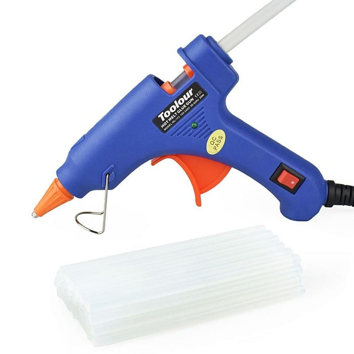 Description:Color: blue Power: 20 W Operating temperature: 140 ° ~ 240 ° Operating voltage: 100-240 V Frequency: 50-60Hz. Nozzle material: aluminum nozzle Indicator: LED Plug type: European plug / US plug Stick size: 6.8-7.8mm Cable length: 136 cm / 4.46 ft Product weight: 145g / 263g / 380g Package Size: 17x9x30cm Features:1. Applicable to 7mm glue sticks. 2 heating glue gun is the use of the innovative PTC high-tech electronic ceramic heating technology, at a lower temperature can still be completed in 3-5 minutes of heating. 3 While the built-in sliding ring can be a good way to avoid glue, control the flow of glue, you can save more glue sticks. 4 glue gun with a compact ergonomic design, easy to carry, volume and lighter weight, it is more practical for us.5 DIY best gift idea, widely used at home, office, factory, etc., mainly used for the assembly / repair / fixing / joining of most types of materials, such as plastic, wood, metal, paper, leather , cloth, toys, furniture, etc. Package includes:1 pcs glue gun 40 pieces 7mm glue sticks ( Length: 15cm )