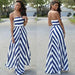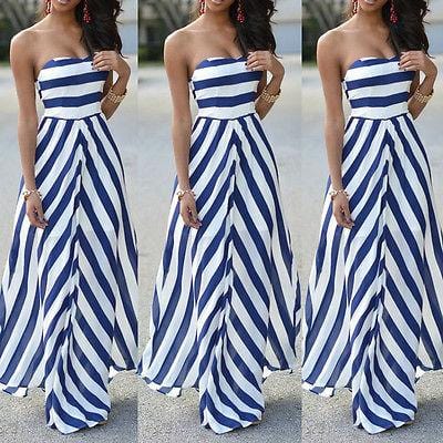 Material : PolyesterMaterial : ChiffonSeason : SummerStyle : Sexy & clubDecoration : NoneSilhouette : Fitted and flaredSleeve Length (cm) : SleevelessPattern Type : StripedSleeve Style : Air ShoulderWaist : EmpireNeckline : Without strapDress Length: Floor LengthGender : Women