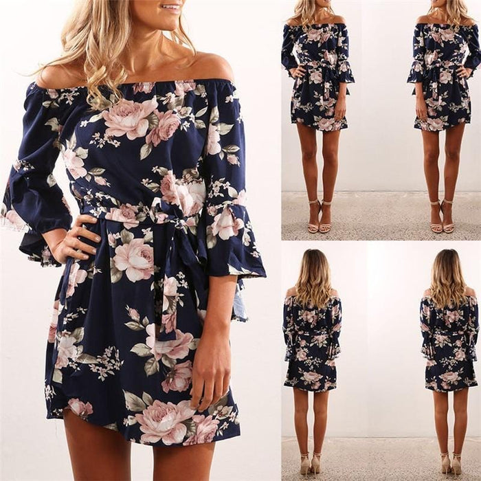 Women Dress 2019 Summer Sexy Off-the-Shoulder Floral Print Chiffon Dress Bohemian Style Short Party Beach Party DressesProduct: women dressSize: S, M, L, XLSleeve: Butterfly SleevePattern: Floral Print PatternLength: Mini DressCondition: Boho beach dress, evening dress Note: 1. Asian sizes are 1 to 2 sizes smaller than European and American. There may be 2 to 3 cm differences due to manual measurement.2 Please check the size chart carefully before buying the item, if you don't know how to choose the size, please contact our customer service.
