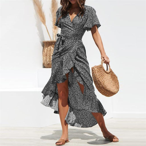 GO-E-MALLSummer Chiffon Dress 2019 Bohemian Style V-Neck Short Sleeve Fashion Beach Dress Polka Dot A-line Party Dress Sun DressesSize: S, M, L, XL, XXLFabr...