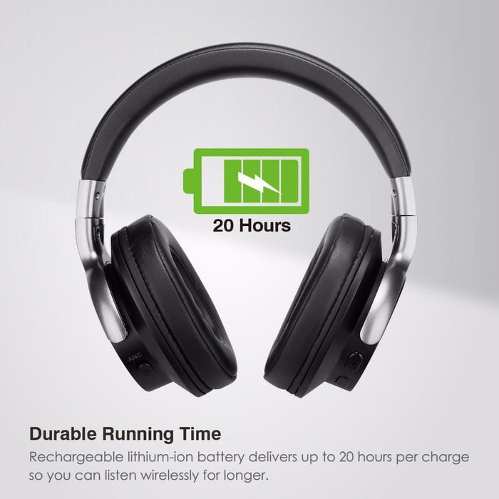 Bluetooth Version: V4.0Bluetooth range: 10 m (free space)Transmission frequency: 2.402 GHz-2.48 GHzBluetooth profiles: HSP / HFP / A2DP / AVRCPHeadband Material: metalDriver units: 40mmNoise reduction value: 18dB-20dBMic Size: 4.0 * 1.5mm for hands give callCushion set Size: protein material, 9.5 cm (L) * 8 cm (W)Wear case: cloth materialAux cable length: 1.5 mBattery capacity: built-in 400 mAh lithium batteryCharging voltage: micro usb 5 V / 1AFull charging time: about 2 hoursWorking time: over 20 hours, if ANC away from / over 18 hours, if ANC on