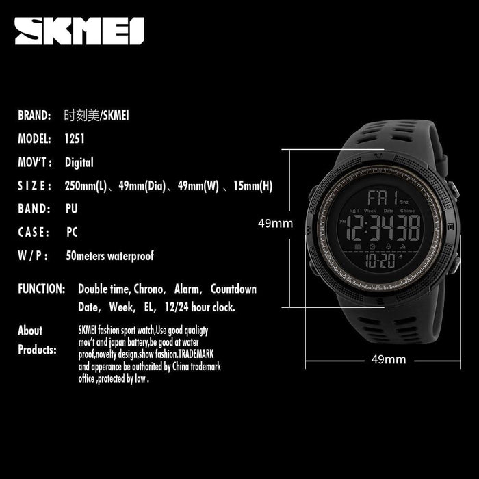 Item Type : Dual Screen Wrist WatchesItem Type : Quartz Wrist WatchesStyle : SportMovement : Dual ScreenHousing material : AcrylicBand Length : 24cmClasp Type : BuckleWater submersible distance : 5 barFeature : AlarmFeature : BacklightFeature : Water ResistantFeature : Multiple time zoneFeature : ChronographFeature : Shock ResistantFeature : StopwatchFeature : Complete CalendarFeature : Auto DateFeature : LED displayDial Diameter : 49mmModel Number : 12511Boxes and cases material : No packageDial Window Material Type : HardlexCase Shape : RoundBand Material Type : PUBandwidth : 22mmCase Thickness : 15mm