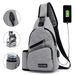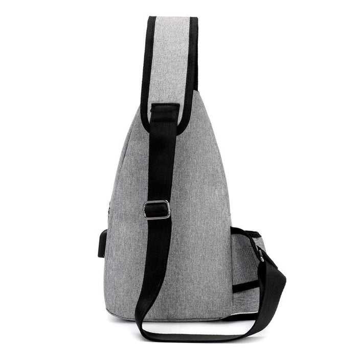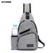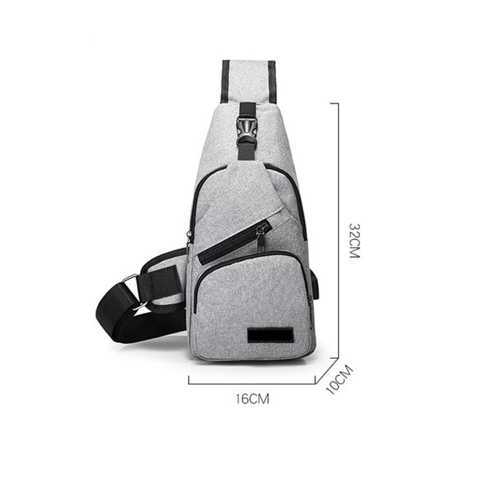 Fabric liningZip closureMATERIAL: The sling bag is made of sturdy and durable polyester, water-resistant.SIZE: 6.3*2.7*12.6 inch(L*W*H), with a long crossbody adjustable strap, smooth zipper, perfect ideal for outdoor sports (hiking, camping, climbing, cycling, etc) and travel use.Chest bag for men/women with external USB Interface: You can easily and conveniently charge your phone, tablet and other devices without opening up the backpack.STRUCTURE: Three zippered main pockets, a small zippered pockets, a front anti-theft pocket. Roomy compartment to organize your cellphone, tablet, wallet, keys, ID card, credit card, and other small personal belongings.