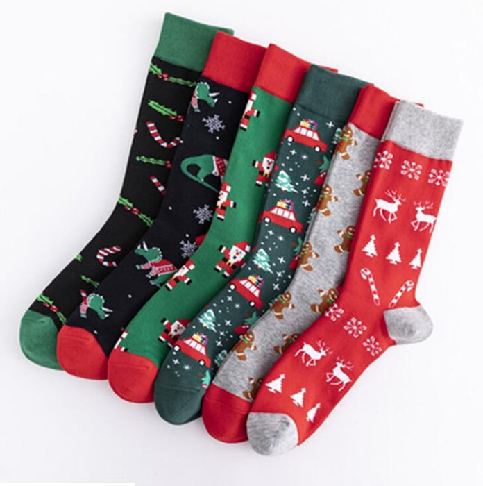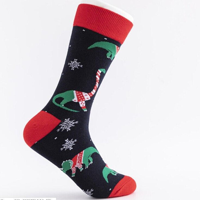 Men Christmas Socks Cartoon Print Dinosaur Deer Ribbed Closing Novelty Clothing Accessories