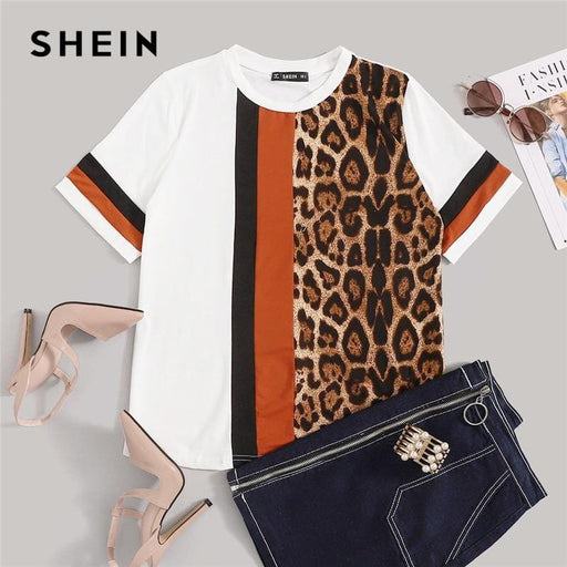 GO-E-MALLMaterial : PolyesterMaterial : SpandexItem Type : CapsFabric Type : ClothStyle : CasualTops Type : ShirtsPattern Type : Striped, LeopardSlee...