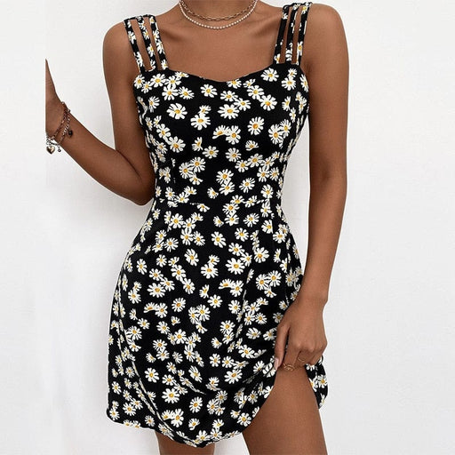 $11.99Women Summer Sleeveless Backless Little Daisy Printed Dress Beach Short Sundress Summer Mini Dress