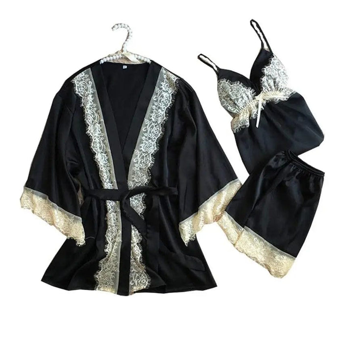 Transform your nights into moments of elegance and relaxation with our Sexy Women Lace Satin Pajamas Sets with Bathrobes. Crafted with the finest materials and exquisite design, this three-piece sleepwear set is designed to elevate your nighttime experience.