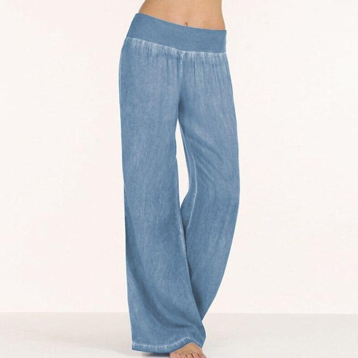Highlights:1 Denim2 elastic at the waist3, leg width4. Solid, smooth5. Loose, comfortableMaterial: Denim imitationReason: CasualSeason: Four seasons Product