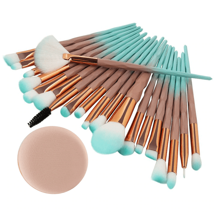 Specification :Color: MulticolorSize: About 1.3 * 19.2cmSize: Powder puff 5.5 cmHair Material: Nylon HairHANDLE Material: Plastic platingUsed with: powderFoundation Makeup BrushSuitable for professional use or domestic use.Easy to use and portable.For controlled eyeshadow application and can also be used to mix eye shadow makeup.Package:20 Pieces / set of makeup brush1 pcs powder pouf
