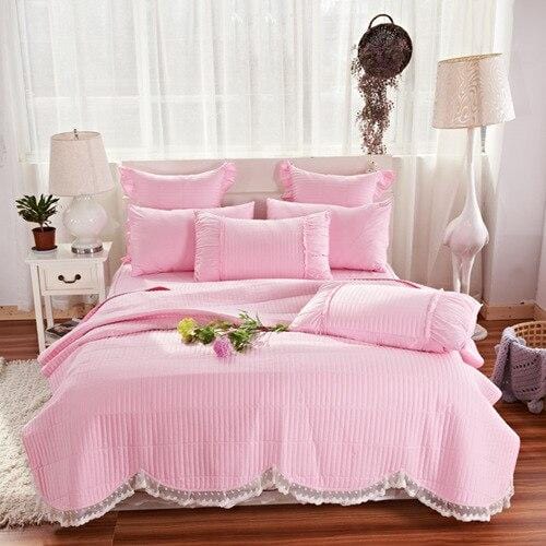 2017 100%Cotton Quilted comforter for summer Bedding Set filling cotton velvet Duvet cover set Bedskirt Queen King size 3/4Pcs