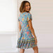 Gender:WomenPattern Type:PrintNeckline: V-neckModel Number:summer dressSilhouette:Line AWaist:NaturalDecoration:SashesSleeve Length (cm):ShortDress Length:Mini, above the kneeSleeve Style:Butterfly SleeveSeason:SummerStyle:Vintage