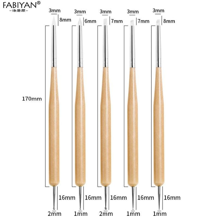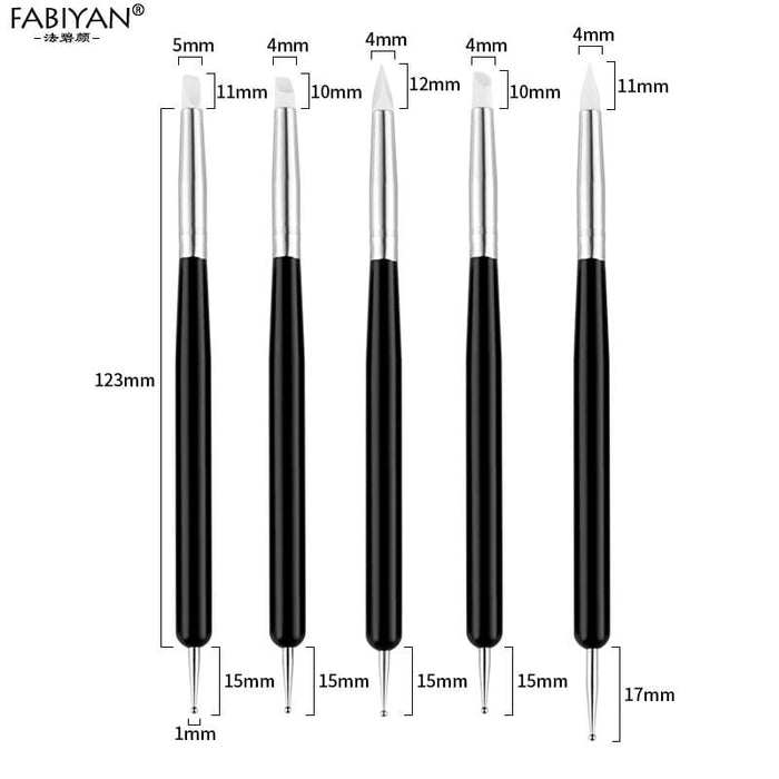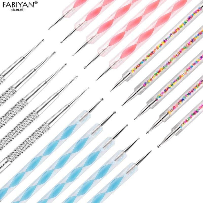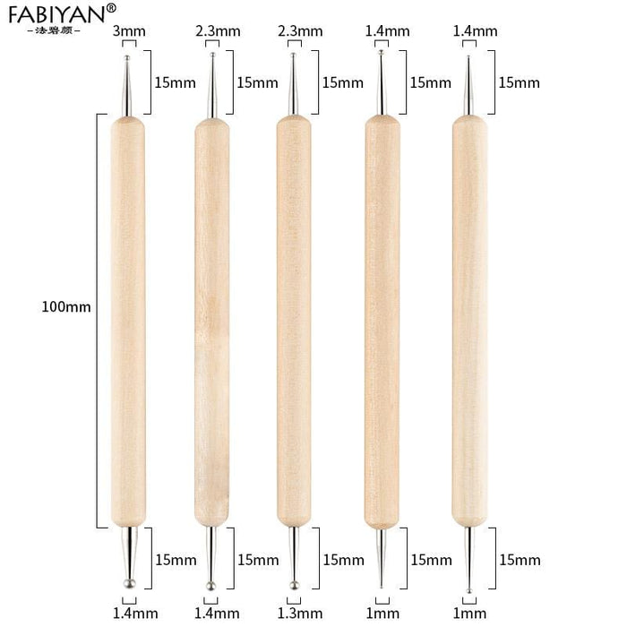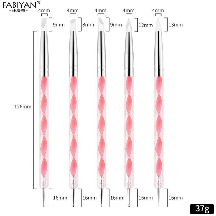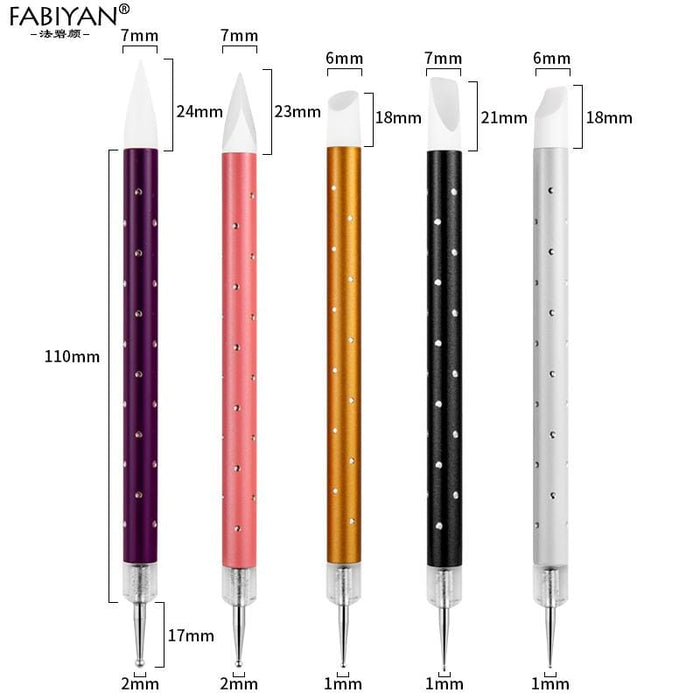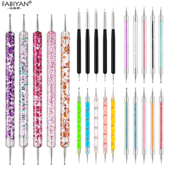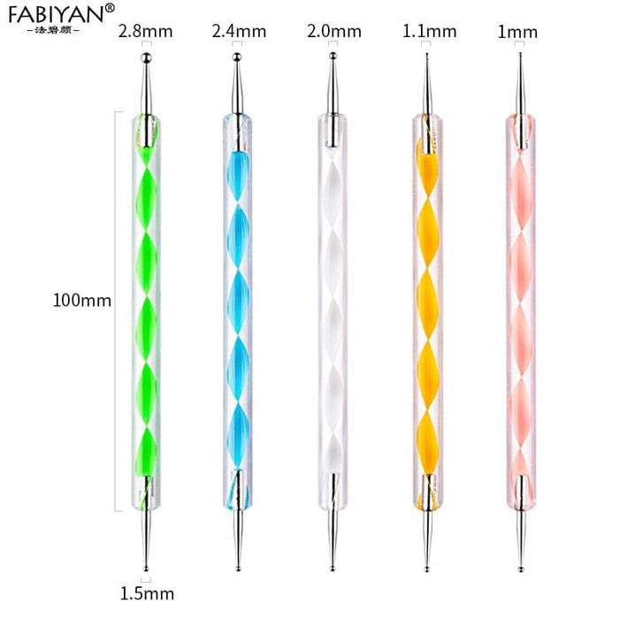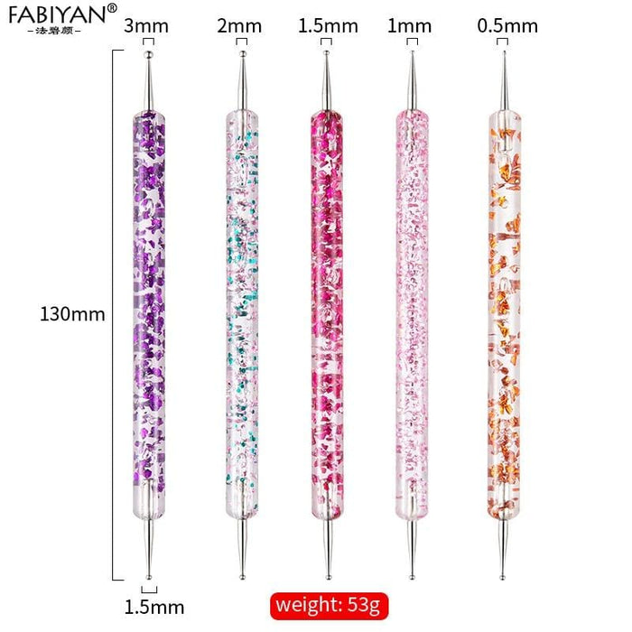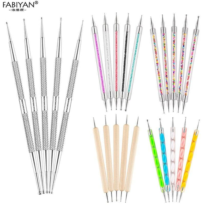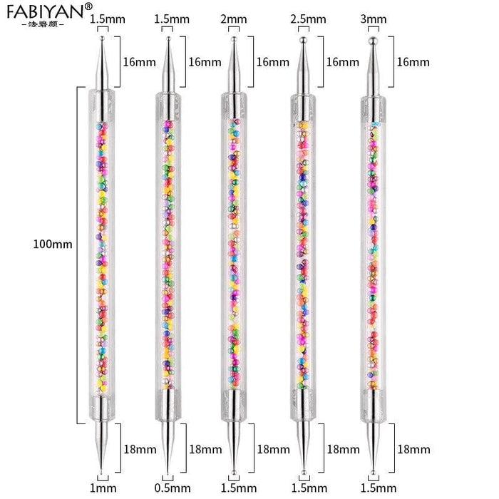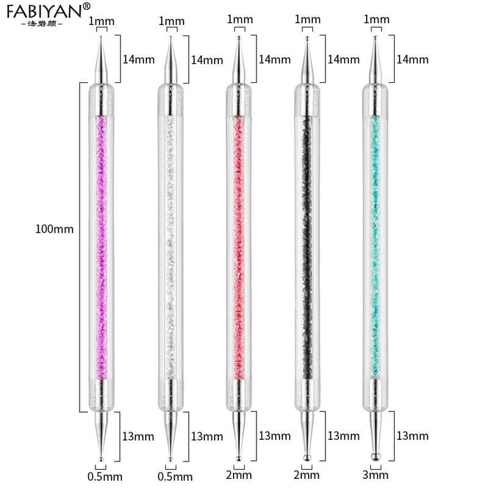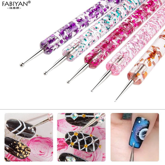 5Pcs Set UV Gel Painting Nail Art Dotting Pen Acrylic Handle Rhinestone Crystal 2 Way Brush Salon Decoration Manicure Tools Kit