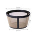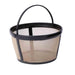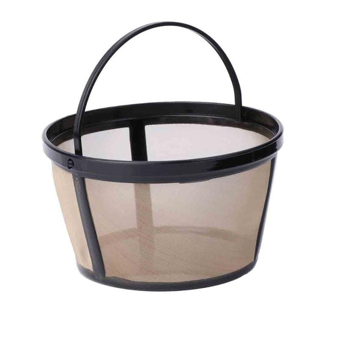 Minimum Order Quantity - 20Reusable golden-mesh coffee filter helps conserve natural resources and protect environment.Cleans easily under running water.Permanent coffee filters let all of the coffee flavor through for richer tasting coffee.These BPA Free reusable and environmentally friendly filters are a significant savings over paper filters.Fits most basket-style coffeemakers.Material: PP Food Grade Plastic/Stainless Steel Upper Diameter: 110mm/4.33''Bottom Diameter: 82mm/3.23''Height: 62mm/2.44''Color: Black+Gold