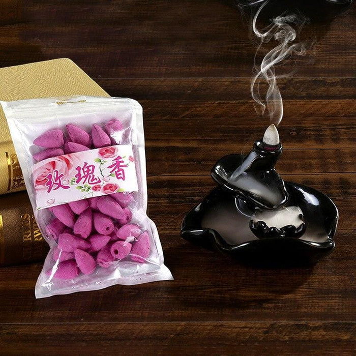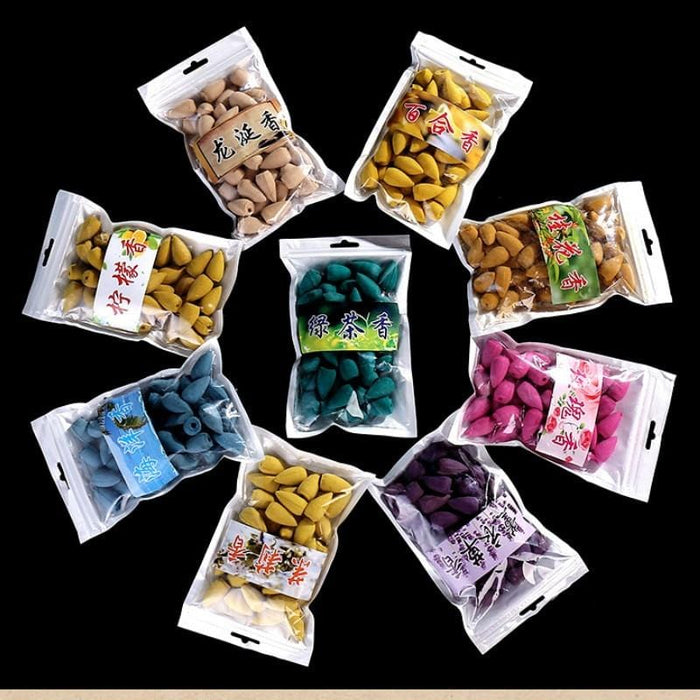 F 45pcs/Bag Cones Incense for Backflow Burner Accessories Natural Sandalwood Rose Lavender Flower Colorful Bullet Shape Incense