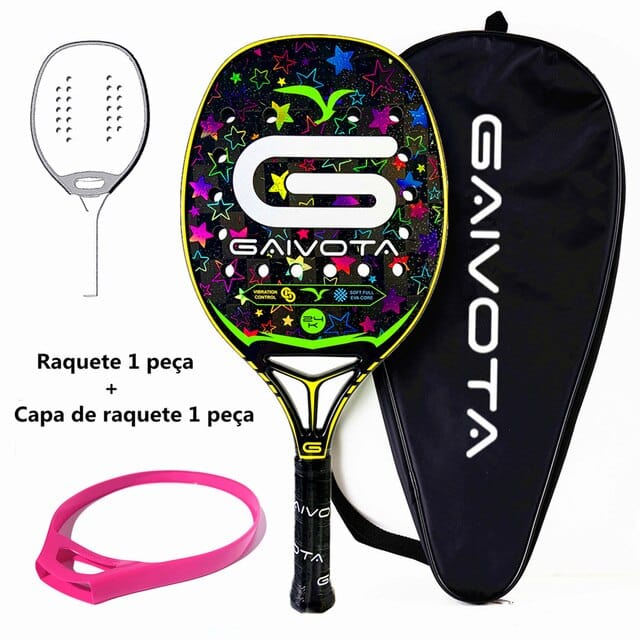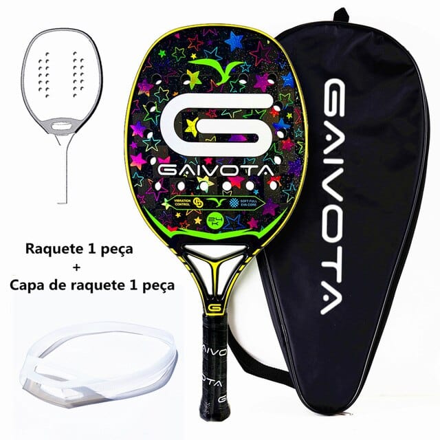 GAIVOTA 24K Carbon Fiber Beach Racket Limited Edition Professional Grade Racket with 3D Color Stamping Holographic Technology