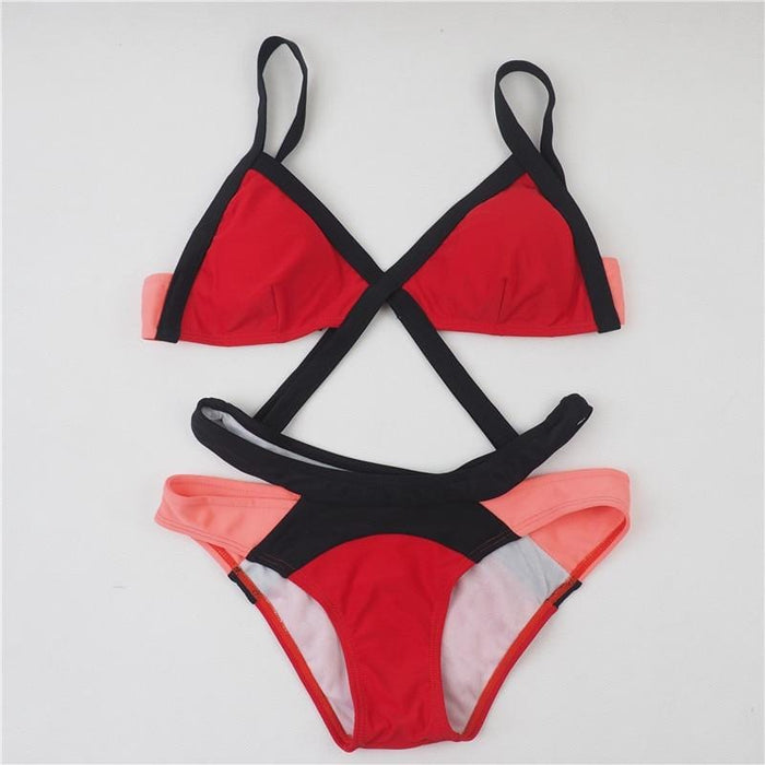 Item Type: Bikinis SetWaist: Low WaistMaterial: PolyesterMaterial: SpandexGender: WomenPattern Type: PatchworkSupport Type: Wire FreeWith Pad: YesDownload measurements