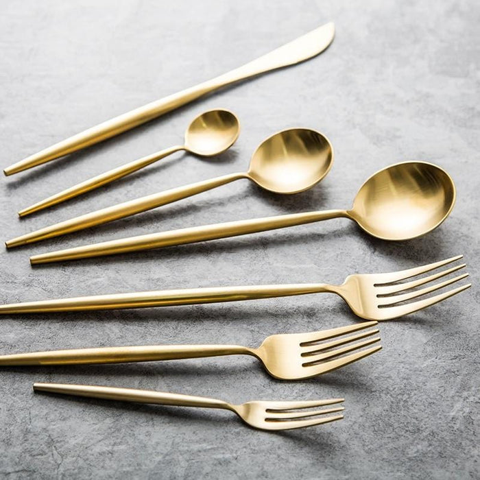 Click to expand Tap to zoom Gold Cutlery Set by GO-E-MALL Sale $17.22 Gold / Set (7 pcs) - $17.22 Color: Gold Set (7 pcs) Size 1 2 3 4 5 6 7 8 9 10+ Quantity Quantity 24 Hour Pass Become A Member These items are available to purchase only by go-e-mall members. 1 Dinner Knife+1 Dinner Fork+1 Dinner Spoon1 Dessert Fork+1 Dessert Spoon1 Fruit Fork+1 Coffee Spoon