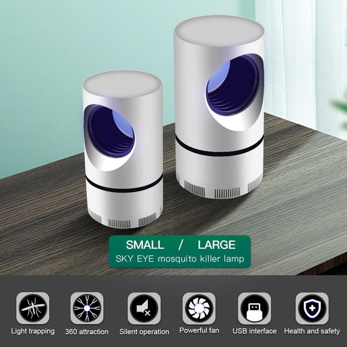 This is a mosquito killer lamp using photocatalytic technology. It has no radiation and is very safe. It is suitable for mothers and children. Features:1. Photocatalytic technology, trap mosquitoes, logistics mosquitoes. 2. No-toxic, no-radiation, no noise, quiet, Safe and suitable for mother and baby. 3. USB plug-in, easy to use. ParameterModel: BG-360-Large Plug type: USB Power: 5W Voltage: DC-5V Color: White Material: ABS Size: 21.5cm * 12cm * 12cm Anti-mosquito range: 20-30㎡ Model: BG-360-Small Plug type: USB Power: 5W Voltage: DC-5V Color: White Material: ABS Size: 11.6cm * 11.6cm * 19.6cm Anti-mosquito range: 10-20㎡ Suggest1. Before going bed , remember to open your mosquito lamp at least 3 hours in advance. Please place the mosquito killer in the dark area. 2. When you are not home, the mosquito likes to stay in the damp or dark places (such as the bathroom, kitchen and utility room, etc.). The usb mosquito lamp will be more effective in these places. 3. After catching the mosquito, please do not pull the power off immediately, let fan continue to run until the mosquito is dehydrated and dried,the product work with Physical mosquito killing method. 4. Please use it for more than 48 hours for the first time. Turn off other light sources when mosquito killing, and make sure that the mosquito killer is the only light source. Place it at a distance of more than one meter above the ground.