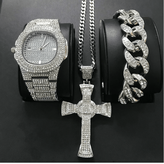 Luxury Hip Hop Diamond Cross Jewelry Combo Set