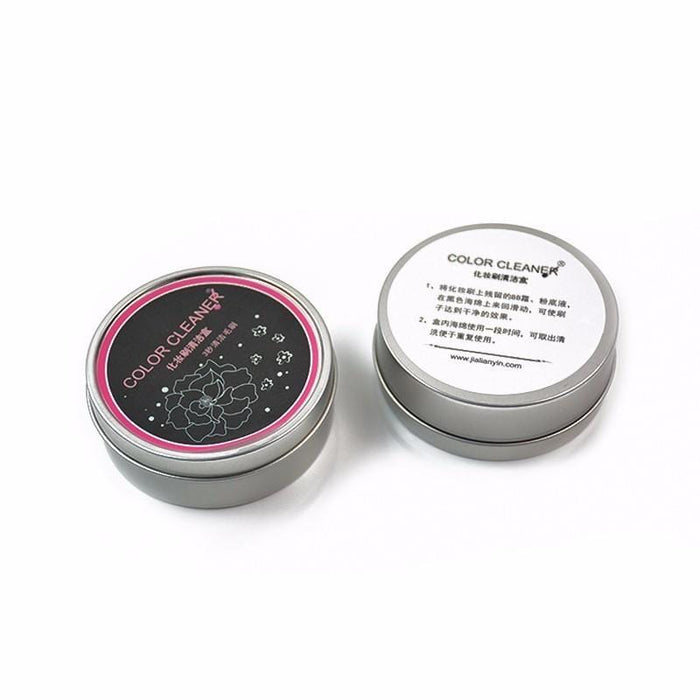 Specifications:Color: Silver box, Black spongeMaterial: Metal box, sponge3 Seconds color off, quick wash. Glide eye shadow brush, against black sponge to remover color. Sponge can be washed with a fragrance free soap and warm water. Lay flat to dry. Easy to carry.