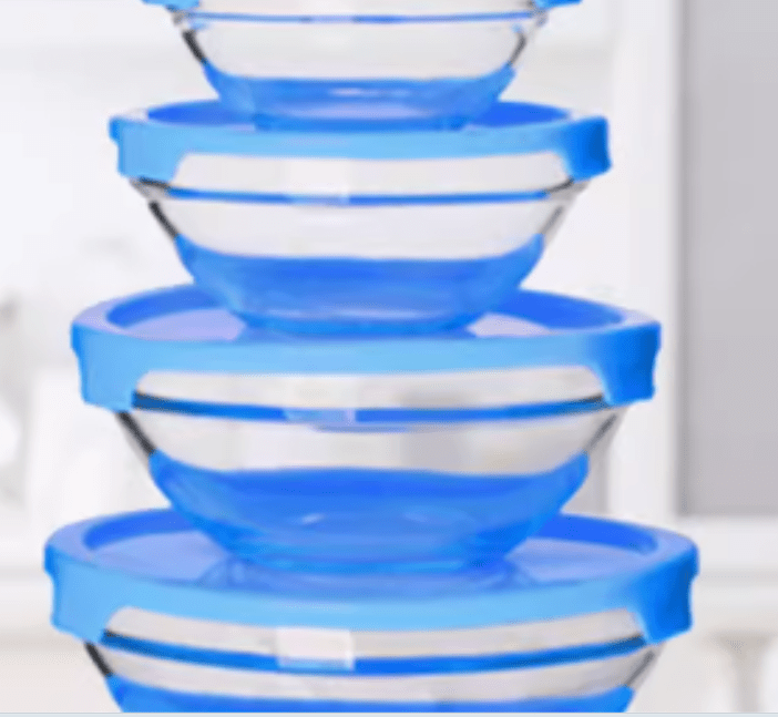 A set of 5 glass bowls with lids is a practical kitchen essential that can be used for various purposes, such as food storage, meal preparation, and serving It is a versatile addition to your kitchen. These bowls can be used for mixing ingredients, storing food, and more. The silicone lids help keep your food fresh and secure.