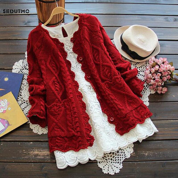 Gender : WomenPattern Type : SolidClosure Type : Stitch OpeningStyle : VintageBrand Name : SEDUTMOSleeve Style : RegularItem Type : CardigansClothing Length : RegularTechnician : Knitting by computerThickness : StandardMaterial : CashmereMaterial : PolyesterMaterial : CottonCollar : V-neckSleeve Length (cm) : FullDecoration : NoneMaterial Composition : Cotton, PolyesterSweater Size : One Size Sweater WomenSweater Women Color : RedSeason : Spring, Autumn, WinterSweater Style : Slim, Casual, Elegant, Vintage, SexyPopular Elements : Knitting Sweaters CardigansStyle 2 : Women Sweaters and PulloversWomen Sweater : Plus Size Cashmere sweaterStyle 3 : Christmas sweater