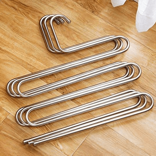 Save your time to match clothes,neat closet will end your choice phobia,more easy to find right clothesSoft non-slip cap on hanger, protect clothes from scratching and eliminates creasesIt is suitable for hanging the pants,Jeans, trousers for both your kids and family.Make it the best of your closet helperThe unique design allows you to hang and remove slacks quickly and efficiently;Color: SilverMaterial: stainless steelSize: 36x36cm