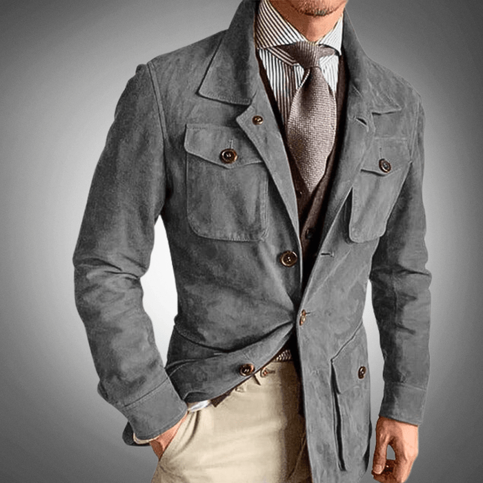 Indulge in the pinnacle of sartorial sophistication with our Jared Premium Suede Jacket. This exquisite wardrobe staple seamlessly blends refined masculinity with opulent suede craftsmanship. Expertly tailored from our exclusive Velvetron suede, this jacket offers a luxurious aesthetic with minimal upkeep, enveloping you in lavish comfort each time you don it. Elevate your style game and relish in the tactile elegance of this extraordinary piece that redefines luxury fashion.