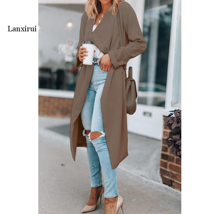 Elevate your spring and autumn wardrobe with our Women's Windbreaker Trench Coat. This versatile piece of outerwear combines timeless style with casual elegance, featuring a solid color design and a classic lapel collar. With its comfortable fit and long length, it's the perfect choice for transitional seasons. Embrace a chic, feminine look with this ladies' trench coat that effortlessly complements any outfit. Stay fashion-forward while keeping the chill at bay with this essential addition to your wardrobe.